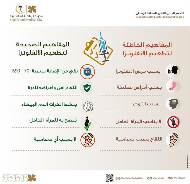 فنّدت مدينة الملك فهد الطبية بعض المفاهيم الخاطئة التي يتم تداولها حول تطعيم الإنفلونزا، ومنها أنه يسبب مرض التوحد.