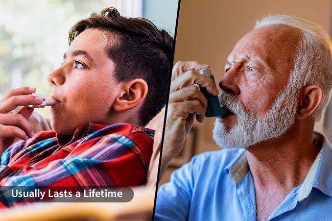 يسبب الربو أيضًا تورم الشعب الهوائية والمخاط في الرئتين، ولكنه حالة مزمنة، إذا كنت مصابًا بالربو، فقد تكون سعة الرئتين أقل لأن التورم والمخاط يحد من حركة الهواء فيهما، كما أنه أثناء نوبة الربو، تضيق المسالك الهوائية، ويَصدر أزيزٌ قد يكون خطيرًا.