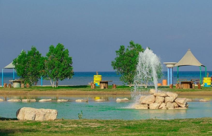 وقالت الأمانة إن البحيرة تبعد عن شاطئ القير بنحو 50 متراً، مبينة أنه تم إنشاؤها في عام 2017 بهدف المحافظة على الحياة البيئية، وزراعة نباتات مائية من البيئة المحيطة مناسبة لإعاشة بعض أنواع الأسماك.