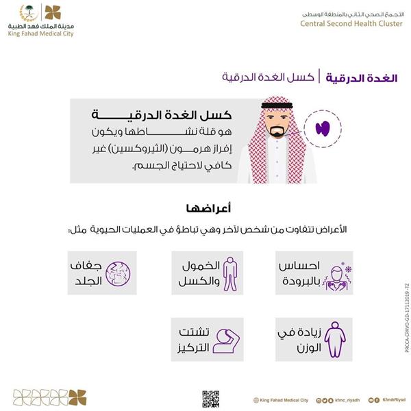 أوضحت مدينة الملك فهد الطبية أن مفهوم كسل الغدة الدرقية، هو قلة نشاطها ويكون إفراز هرمون (الثيروكسين) غير كافٍ لاحتياج الجسم.