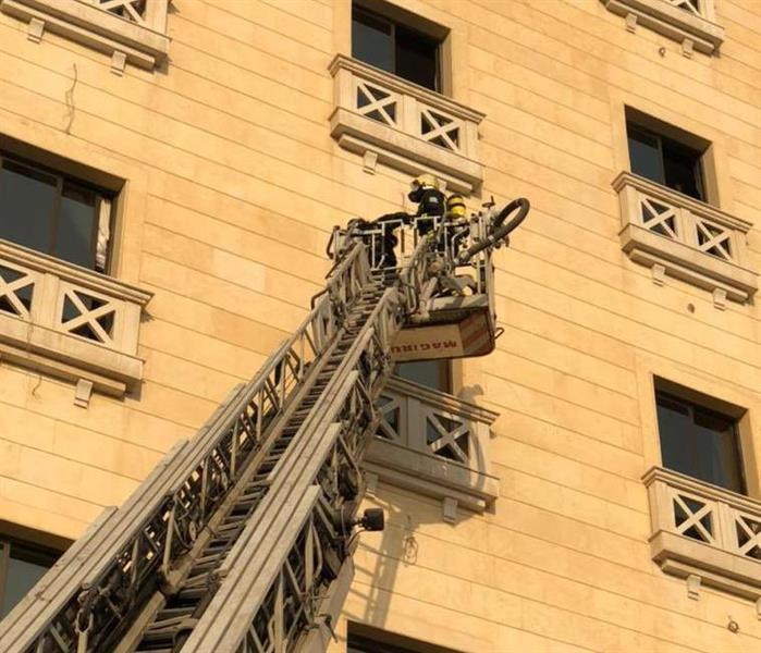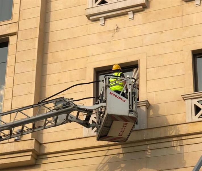 واندلع الحريق بسقف الدور الثالث بالفندق، وأخلى الدفاع المدني النزلاء احترازيًا، دون وقوع إصابات.