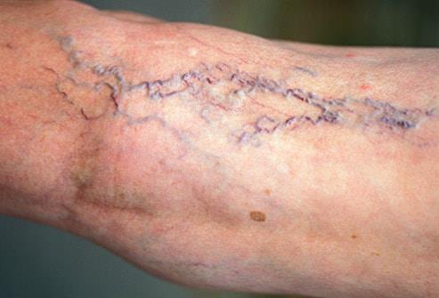 عندما تعمل الأوردة بجهد إضافي لإعادة الدم إلى القلب، فإنها تنتفخ وتبدو زرقاء داكنة، ويعاني المصاب من الثقل والتشنج، مع زيادة احتمالية الإصابة مع التقدم في العمر، وعند ذوي الوزن الزائد، أو في حال الوقوف أو الجلوس لفترات طويلة، ويكون العلاج بممارسة الرياضة أو ارتداء الجوارب الضاغطة.