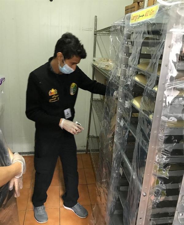 واتخذ الإجراء اللازم بحق المخبز وفق لائحة الغرامات والجزاءات المنصوص عليها، ومصادرة المواد الغذائية التي تم ضبطها في الموقع، وإتلافها بعد أن تم إغلاق المخبز.