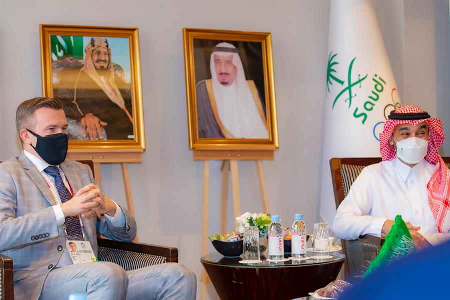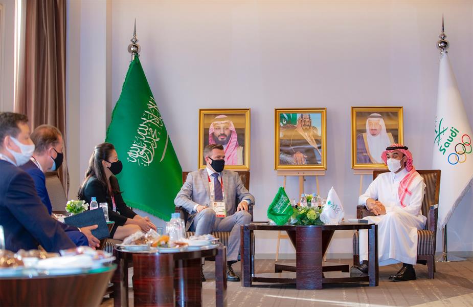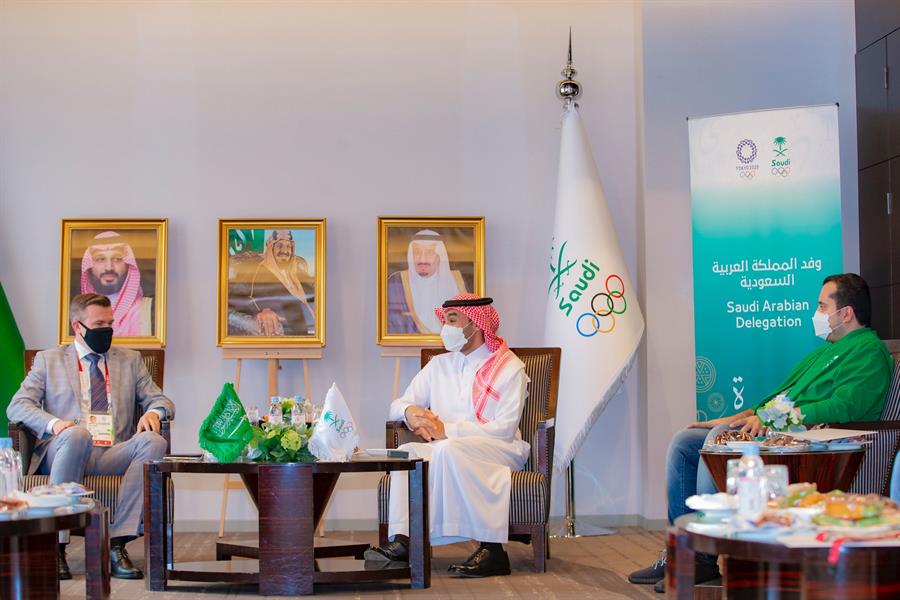 وشهدت الجلسة حضور، نائب رئيس الجنة الأولمبية السعودية، الأمير فهد بن جلوي، وذلك خلال اللقاء الذي جمعهم بمقر رئاسة البعثة السعودية في العاصمة اليابانية طوكيو.