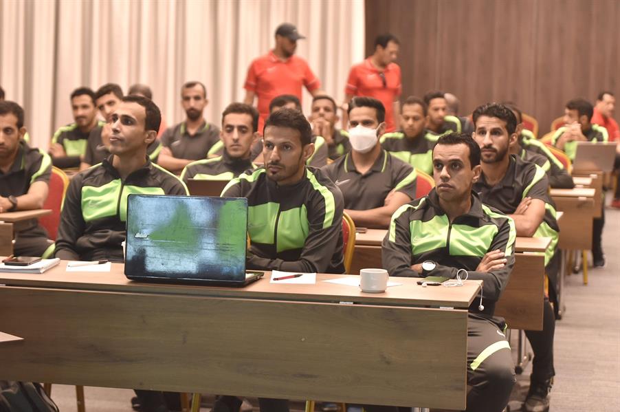 وأُقيمت الحصة التدريبية على فترتين صباحية ومسائية، حيث شملت الفترة الصباحية على تمرين لياقي استمر لمدة ساعة ونصف، ثم مران عملي بتحكيم مباراة ودية بوجود تقنية حكم الفيديو المساعد VAR، قبل أن تختتم الفترة بمحاضرة تم خلالها شرح تعديلات القانون الجديد.