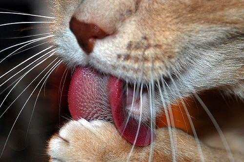 تتمكّن القطط من تنظيف العظام تماماً من أي ذرة لحم عالقة بها باستخدام لسانها الخشن، كما تستطيع تذوق وتمييز الروائح تماماً مثل الكلاب.