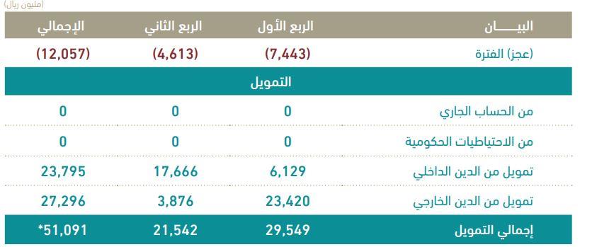 وأوضحت البيانات أن العجز الذي سجلته الميزانية جرى تمويله من الدين الداخلي بقيمة 17.6 مليار ريال، إضافة إلى تمويل من الدين الخارجي بقيمة 3.8 مليار ريال.