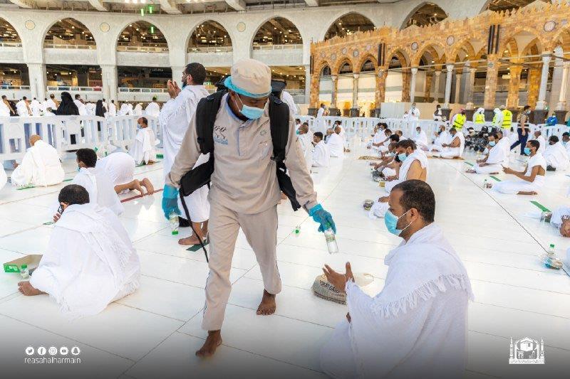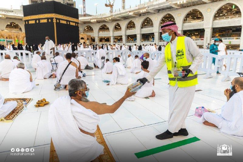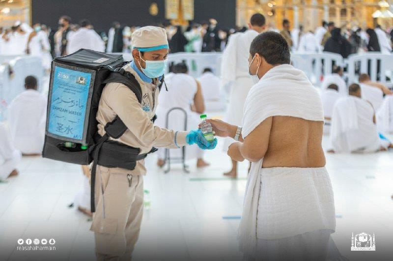 وأشار المتحدث الرسمي للرئاسة أن الوكالة قامت عبر الإدارة العامة لسقيا زمزم بتوزيع أكثر من ثلاث مئة ألف عبوة موزعة على صحن المطاف والمداخل وعامة الدور الأول بالإضافة لتغطية المصليات النسائية كافة، ومتابعة توزيع العبوات في صحن المطاف للحجاج بالحقائب الأسطوانية، ومتابعة تعقيم شنط وحافظات العبوات والحقائب الأسطوانية والعربات الخاصة بالمطاف.