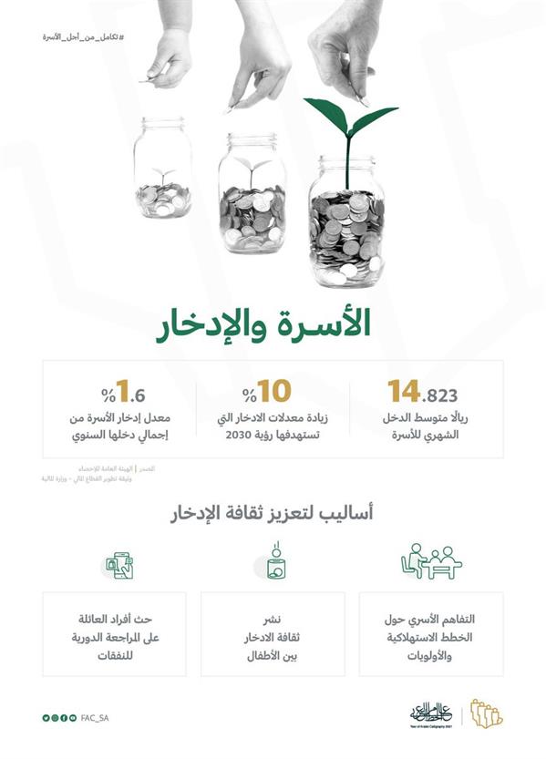 أكد مجلس شؤون الأسرة، أن تعزيز ثقافة الادخار، يعتمد على الأسرة، فهي الركيزة الأساسية من خلال توعية النشء، بهدف المساهمة في بناء اقتصاد قوي.