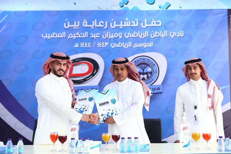 وشهدت مراسم التوقيع حضور الرئيس التنفيذي بنادي الباطن، عوض الهزيمي ورئيس لجنة الاستثمار بالنادي، محمد العفاسي، فيما مثّل شركة ميزان العضيب ممثل عام الشركة، أحمد الحميدي، بحضور ممثل شركة FG Sport، زياد الغامدي.