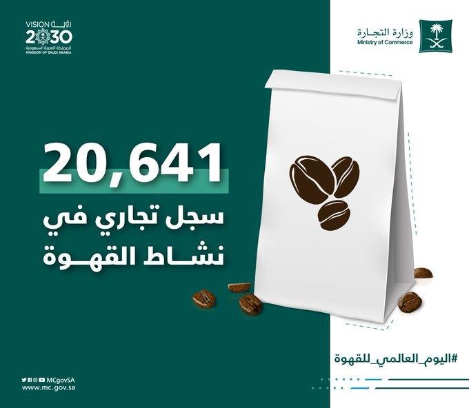 أوضحت وزارة التجارة، أن هناك 20.6 ألف سجل تجاري في نشاط القهوة بمختلف مناطق المملكة، وذلك بمناسبة مشاركتها في الاحتفاء باليوم العالمي للقهوة.