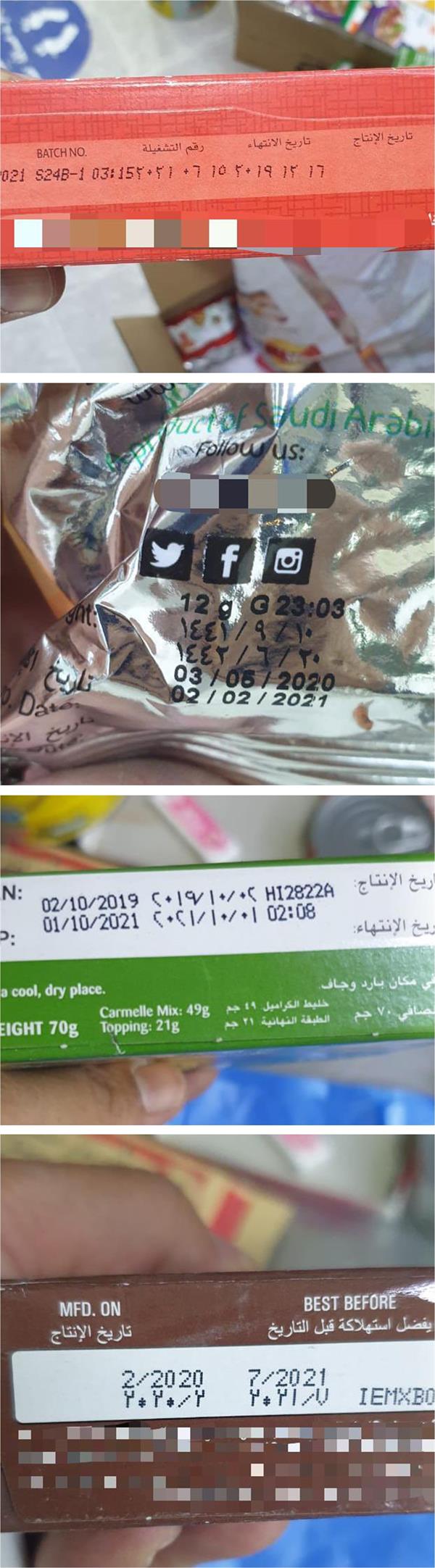 وأظهرت صور نشرتها "التجارة" نماذج من عبوات المواد الغذائية المصادرة، والتي توضّح انتهاء صلاحيتها من فترات طويلة يمتد بعضها لعامين، حيث تم إيقاع العقوبات النظامية بحق صاحب المنشأة.