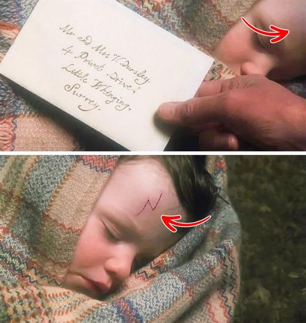 هاري بوتر وحجر الساحر.. تعد ندبة هاري بوتر هي الندبة الأشهر في السينما العالمية، وفي فيلم هاري بوتر وحجر الساحر، عندما يترك دمبلدور هاري مع عائلة من البشر غير معتادي السحر، نرى أن الندبة قد اختفت، ربما بفعل السحر!