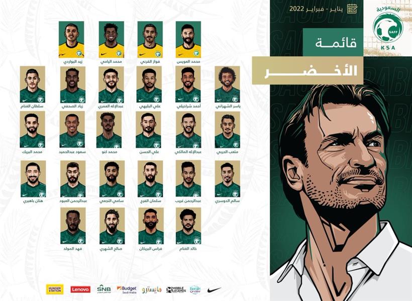 حدد المدير الفني للمنتخب الوطني لكرة القدم، الفرنسي هيرفي رينارد، أسماء اللاعبين الذين سيشاركون في مباراتي عمان واليابان، وذلك ضمن التصفيات النهائية المؤهلة لكأس العالم 2022.