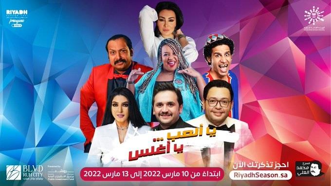 استعرض حساب "عيشها" الفعاليات الترفيهية التي ستقام بالمملكة خلال أسبوع، ومن أبرزها مسرحية "قحفية وغترة وعقال"، وحفلة غنائية لأحد فرق "الهيب هوب".