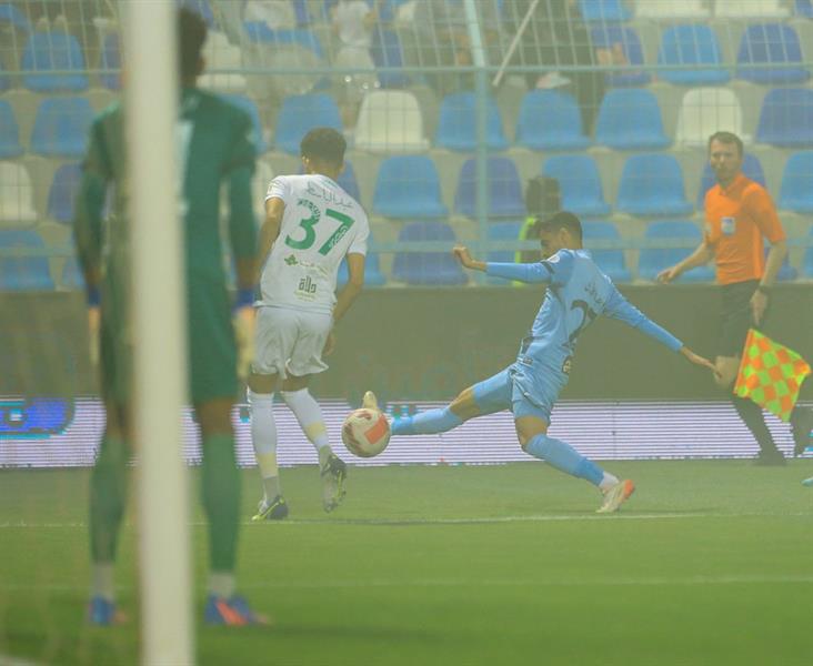 وسدد لاعب الأهلي علي مجرشي كرة في الدقيقة (5) تصدى لها حارس مرمى الباطن كومبانيا.