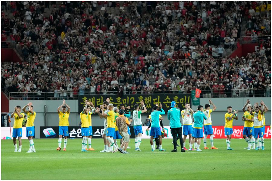 فاز منتخب البرازيل بخماسية مقابل هدف خلال المباراة التي جمعته بنظيره الكوري الجنوبي، وديًا اليوم (الخميس) ضمن استعدادات المنتخبين لكأس العالم 2022 لكرة القدم.