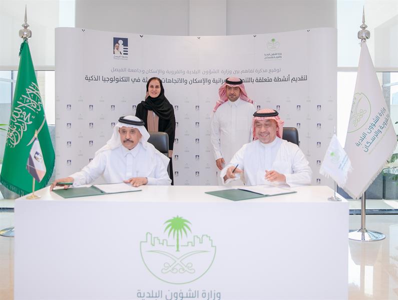 وجرى التوقيع بحضور وزير الشؤون البلدية والقروية والإسكان الأستاذ ماجد الحقيل والأميرة الدكتورة مها بنت مشاري بن عبدالعزيز آل سعود نائبة رئيس الجامعة للعلاقات الخارجية والتطوير، ومثّل وزارة الشؤون البلدية في توقيع المذكرة نائب الوزير إيهاب حشاني، فيما مثّل جامعة الفيصل رئيس الجامعة الدكتور محمد آل هيازع.