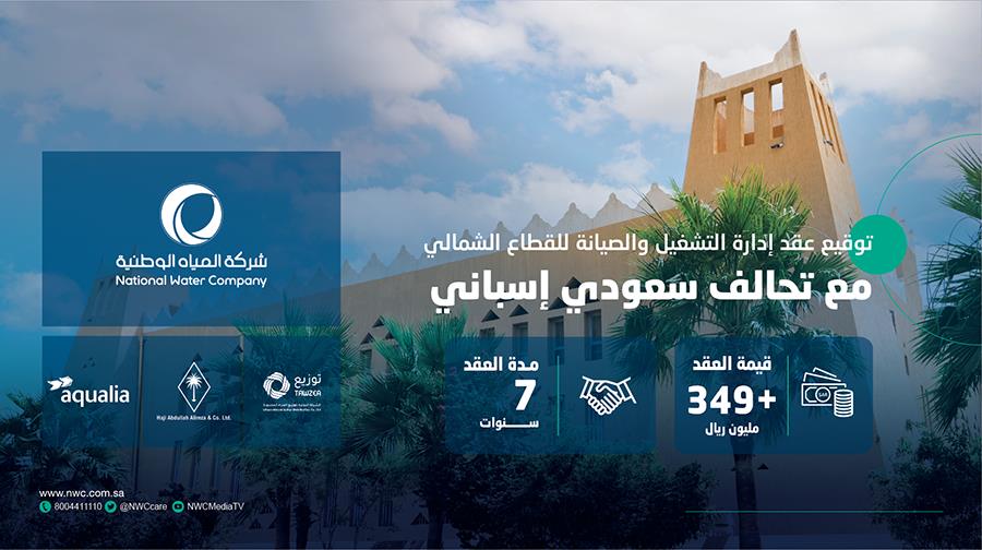 وأضافت أن العقد الثاني أُبرم مع ممثلي التحالف السعودي الإسباني، الذي ضم ممثل الشركة الدولية لتوزيع المياه المحدودة "توزيع"، وممثل شركة الحاج عبدالله علي رضا، وشركاه المحدودة "هاكو"، وممثل شركة إف سي سي أكواليا، لإدارة التشغيل والصيانة للقطاع الشمالي الذي يشمل مناطق القصيم وحائل والجوف والحدود الشمالية، بقيمة تبلغ أكثر من 349 مليون ريال.