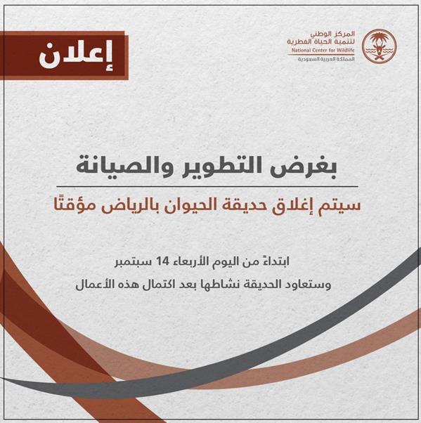 أعلن المركز الوطني لتنمية الحياة الفطرية عن إغلاق حديقة الحيوان بالرياض مؤقتاً.