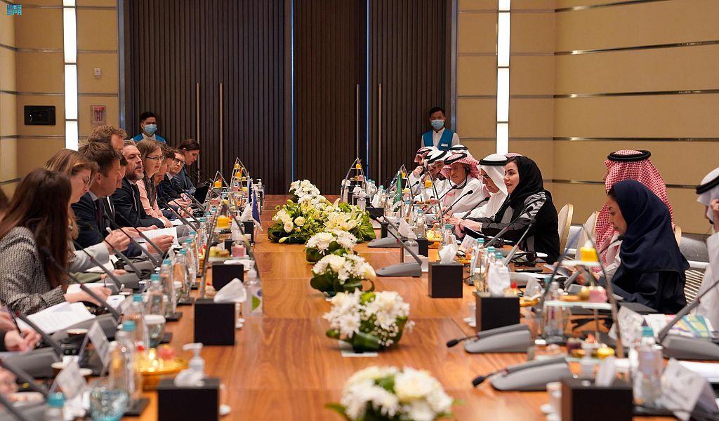 وأكدت خلال لقائها في الرياض بفريق عمل الشرق الأوسط والخليج التابع للمجلس الأوروبي برئاسة الدكتور تيل بلوم، وكالن ميتري، أن المملكة حققت قفزات نوعية في مختلف مجالات حقوق الإنسان تجسيداً لرؤية 2030 التي اتخذت من الإنسان محوراً للتنمية.