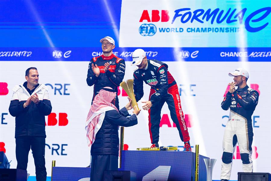 وتوّج صاحب السمو الملكي الأمير خالد بن سلطان الفيصل رئيس مجلس إدارة الاتحاد السعودي للسيارات والدراجات النارية، وشركة رياضة المحركات السعودية، ومعالي نائب وزير الرياضة الأستاذ بدر بن عبدالرحمن القاضي، الفائزين؛ حيث حصل الألماني باسكال فيرلاين سائق فريق "تاغ هوير بورشه فورمولا إي" على المركز الأول في الجولة الأولى من سباق كور الدرعية إي بري 2023، والجولة الثانية من بطولة العالم " أي بي بي فورمولا إي"، فيما نجح البريطاني جايك دينيس سائق فريق "أفالانش أندريتي موتورسبورت"، في حصد المرتبةِ الثانية في السباق، وحلّ البريطاني سام بيرد سائق فريق "جاكوار تي سي اس " ثالثاً للترتيب.