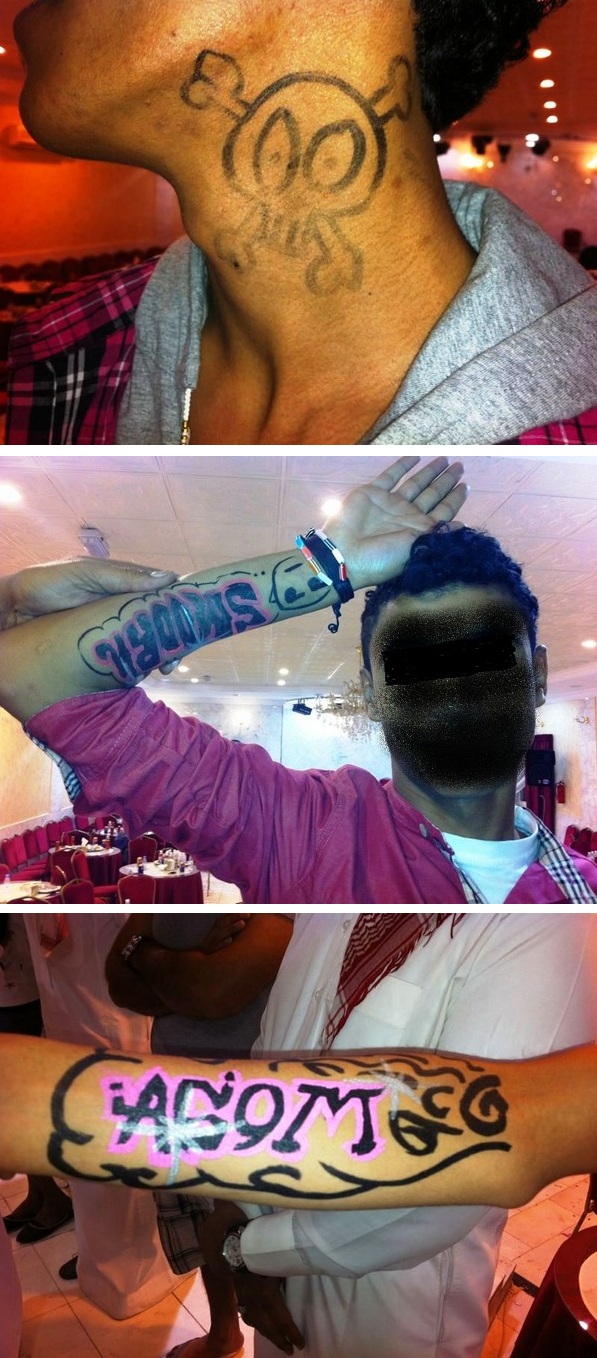 وكان بعض الشبان المقبوض عليهم يحملون أسماء ورسومات ونقوشا على أجسادهم منها رموز عبدة الشيطان ورسوم جماجم على أيديهم ورقابهم.