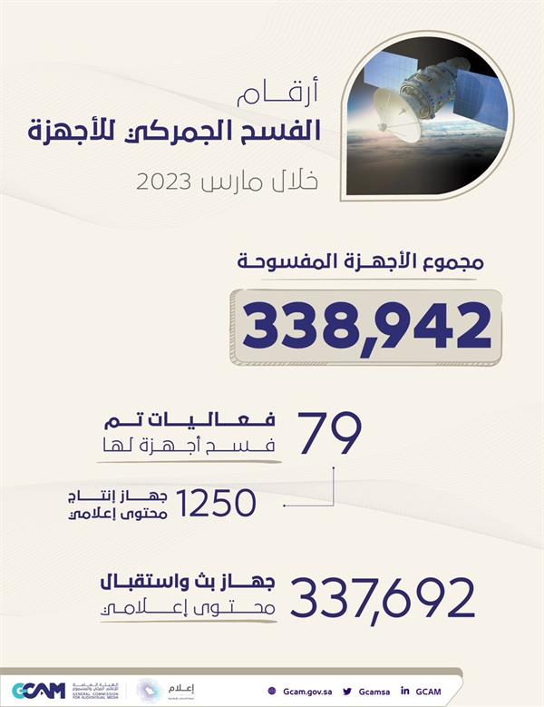 وأضافت أن من بين الأجهزة التي فسحتها؛ أجهزة لـ79 فعالية، بما يقارب 339 ألف جهاز، بينها ألف و250 جهاز إنتاج محتوى إعلامي، وما يقارب 338 ألف جهاز بث واستقبال.
