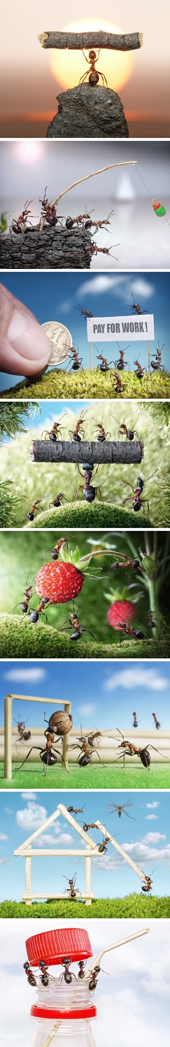 التقط المصور الروسي المحترف "أندريه بافلوف" صورا فريدة للنمل باستعمال كاميرا خاصة. وقام المصور بخداع النمل لكي يتمكن من التقاط هذه الصور الفريدة وذلك باستعمال أطعمة مختلفة لاغراء النمل للتجمع أو فعل شئ محدد يرغب بتصويره.