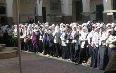قررت مدرسة فنية في محافظة المنيا جنوبي مصر فصل 3 طالبات بسبب تعدّيهن على معلمتهن بـ «الشبشب»، فيما تم احالة القضية الى النيابة العامة تمهيدًا لمحاكمتهن. وكانت 3 طالبات بالمدرسة الفنية بنات بعزبة طه السبع بمدينة المنيا، قمن أمس بالتعدى على معلمة بالمدرسة، وإسقاطها على الأرض، والاستمرار في ركلها بالأقدام حال إشرافها على دخولهن الفصول، إضافة إلى تقطيع الخمار الذي تضعه على وجهها. كما قامت إحداهن بخلع «شبشبها» والتهجّم به على أحد المدرسين الذي حاول منع الطالبات المعتديات من الاستمرار فى تعديهن على مدرستهنّ. وكان وكيل وزارة التربية والتعليم تلقى إخطارًا من إدارة المنيا التعليمية بقيام الطالبات دعاء وهاجر ومريم بالتعدّي على المعلمة، والتي أصدرت قرارها بإحالة الموضوع إلى النيابة العامة للتحقيق فيما حدث، تمهيدًا لتقديم المعتديات إلى المحاكمة الجنائية بتهمة التعدّي على موظفة عامة أثناء وبسبب العمل. كما قام مجلس إدارة المدرسة بإصدار قرار فوري بفصل الطالبات الثلاث، ودعا مجلس الأمناء إلى اجتماع طارئ لاعتماد قرار الفصل، حيث عقد على الفور اجتماعًا تقرر فيه اعتماد قرار الفصل.