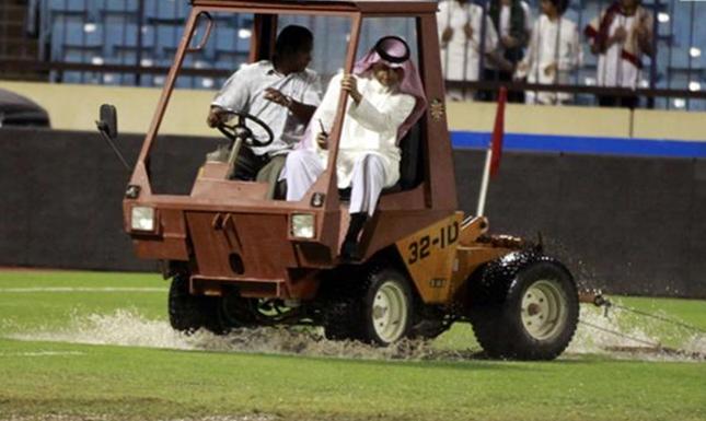 أوضحت وكالة الشؤون الفنية بالرئاسة العامة لرعاية الشباب أن سبب تجمع مياه الأمطار في ملعب مدينة الأمير عبدالله بن جلوي الرياضية بمحافظة الأحساء يوم الجمعة الماضي كان نتيجة هطول الأمطار بكميات غزيرة قبل وأثناء لقاء فريقي هجر والإتحاد الذي أقيم ضمن منافسات دوري زين السعودي للمحترفين، إضافة إلى انسداد قنوات الصرف لعدم إزالة نشارة الخشب المستخدمة من قبل منظمي مهرجان الخيول العربية الثالث الذي اختتم في وقت متأخر من مساء الخميس الماضي وذلك لفرش مكان إيواء الخيول بالمنطقة الشمالية الشرقية من الملعب حيث جرفنها مياه الأمطار مما أدى إلى انسداد قنوات التصريف بالممر الرئيس والممرات المؤدية إلى غرف اللاعبين وعدم تحمل واستيعاب مضخات رفع مياه الأمطار بسبب ارتفاع منسوب المياه المتجمعة .