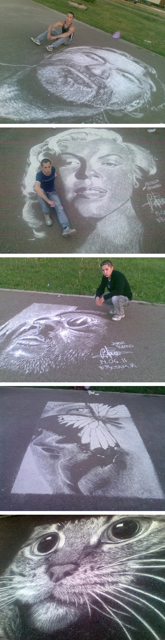 وأحال الفنان رستم فالييف طرقات مدينته إلى لوحات فنية عبر رسوماته لمجموعة من الفنانين والشخصيات العالمية على الأسفلت، مقتصرا فيها على الطبشور الأبيض فقط، وعلى الرغم من ذلك فقد جاءت متقنة لمختلف تفاصيل الشخصية.
