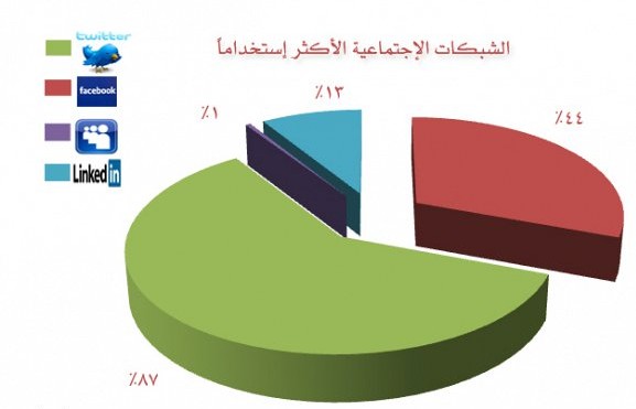 كشفت نتائج مسح الكتروني جديد أجري في المملكة قبل أيام بأن السعوديين أكثر استخداما لتويتر مقارنة بالشبكات الاجتماعية الاخرى مثل فيسبوك و لينكدإن.