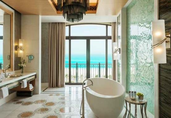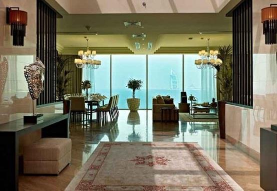 الجناح الملكي بمنتجع وسبا "الحبتور جراند"، ويمتد على مساحة 500 متر مربع، ويضم 3 غرف نوم وصالة استقبال وغرفة طعام، ويطل على الخليج ودبي مارينا، ويبلغ سعر الليلة فيه 30 ألف درهم.