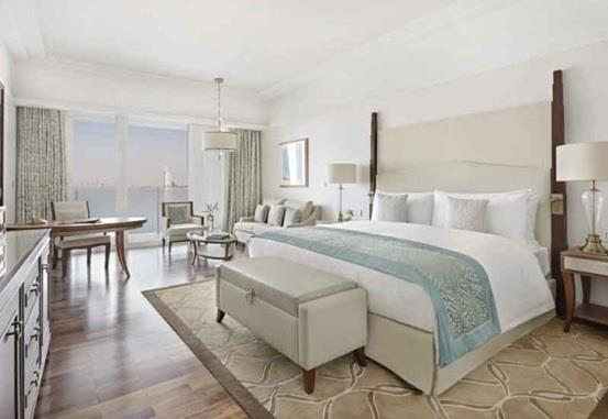 جناح "جراند كينج" بمنتج "ريكسوس النخلة دبي"، ويتمتع برؤية بانورامية على نخلة الجميرا، من خلال نوافذ طولية وتراسات خاصة، ويضم تصاميم ومفروشات فاخرة وأجهزة متقدمة تقنياً، ويبلغ سعر الليلة فيه 26.099 درهما.