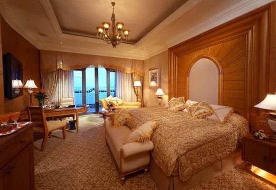 الجناح الملكي في فندق "برج العرب"، ويمتد على مساحة 780 مترا مربعا، بواقع طابقين، ويضم غرفتين، ومفروشات وتصاميم فاخرة، كما أنه مزود بمصعد خاص وسينما، ويطل على الخليج، ويبلغ سعر الليلة فيه 39.528 درهما.